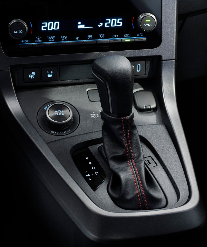 Mit Hilfe einer neuen Fahrmodusauswahl lässt sich das Fahrzeug sowohl für sportliche Fahrten als auch für den Alltagsgebrauch anpassen. Die Fahrmodi „Sport“, „Normal“ und „Eco“ bieten unterschiedliche Einstellungen für die elektrische Servolenkung, die Klimaanlage, die Gasannahme und die Instrumentenanzeige. Bei Modellen mit dem Gazoo Racing Direkt-Automatikgetriebe werden auch das Schaltgefühl und die Gangauswahl angepasst. Der Sport-Modus bietet ein direktes Schaltgefühl, während es im Normal- und Eco-Modus ein ausgewogenes Verhältnis zwischen Komfort und Direktheit aufweist. Die schnellsten Schaltvorgänge werden in der sogenannten M-Range gewährleistet. Dabei wird der Fahrer feststellen, dass er sich im Drehzahlbereich zwischen 4.900 U/min und 7.200 U/min (Maximaldrehzahl) in der Mitte des Geschehens befindet.